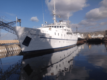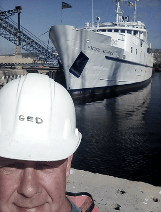 We spent 2 months on the Pacific Aurora helping the owners Boris and Shirley with various tasks on board ship. Our jobs varied from rust treatment/painting on the decks and railings, cleaning/polishing brass, decks and cabins to Ged helping in the engine room and repairing wooden hand rail s and myself cooking in the galley. We had such a great time . We started off our sea adventure moored in the bay until Boris and Shirley arranged a semi permanent mooring on a working ship yard near the Naval base about a 30 minute walk from the town. When we were given temporary charge of the ship while Boris and Shirley went home to Canada we carried on with our duties taking really good care of the lovely Pacific Aurora. We almost finished painting the ship. We got to know and spend time with the local people who took us under their wings.