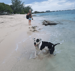 We really enjoyed looking after Tank (another rescue dog) in his home on 7 mile beach. He loved being taken out in the car for a drive and absolutely adored swimming in the sea and bounding into the waves chasing stones!