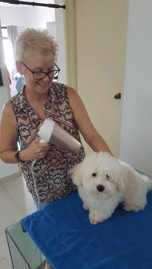 Enzo has been great fun, he is just the sweetest thing, such a character. When he is excited, especially treat time and before his walks he spins round and around like a mini tornado, it is so funny to watch. He loves to take us for walks around his neighbourhood to see his friends (human and furry) as he is quite a celebrity in the locality. Enzo is a Coton de Tulear an aptly named breed as they really are a big cotton fluff ball - who can resist that little face and his big eyes - we are thinking of asking to take him home with us.