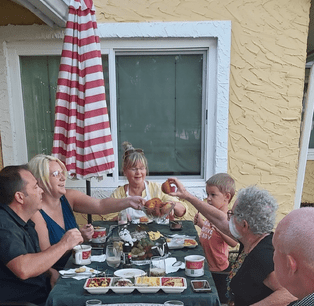 We were asked to help out with Chou oui and Lil'bit and the general day to day duties with Christie, Tamas and little Atilla and as it's the festive season we helped Carla put up all the Christmas decorations. The first day we all got together for a family BBQ in Marys garden. This was a frequent event - eating at Marys , she is a great cook and spoilt us with morning coffee, snacks and our evening meals . We did not go hungry, we always took carry outs back to our studio apartment for lunches and Mary was always tempting us with fresh baked pastries and muffins.