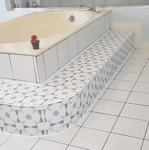 Almost finished, concentrating on the last few tiles on the splash back under the cabinet - fiddly work.