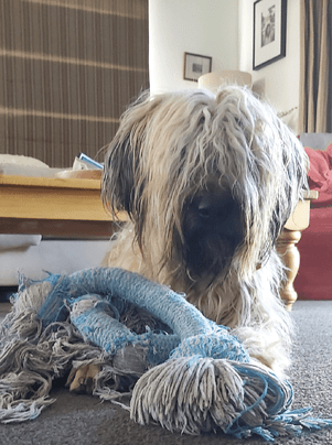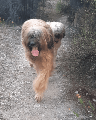 Briards, Chappie and Maggie , brother and sister. Our first time looking after this breed and we thought they were just great. Chappie was very vocal and always let you know when it was time for snacks, he would not stop until he had his quota and he knew exactly how much he was allowed to eat, 2 carrots at midday and 2 apples and a carrot after dinner in the evening. Maggie was quieter as she knew her brother would make sure treats were not forgotten.