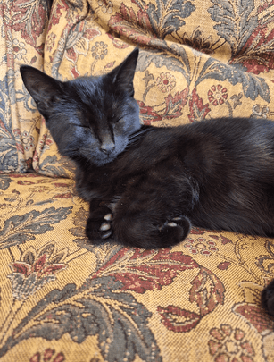 Andorra, one tired little kitten, after her little jaunt around the garden, chasing birds and climbing trees!
