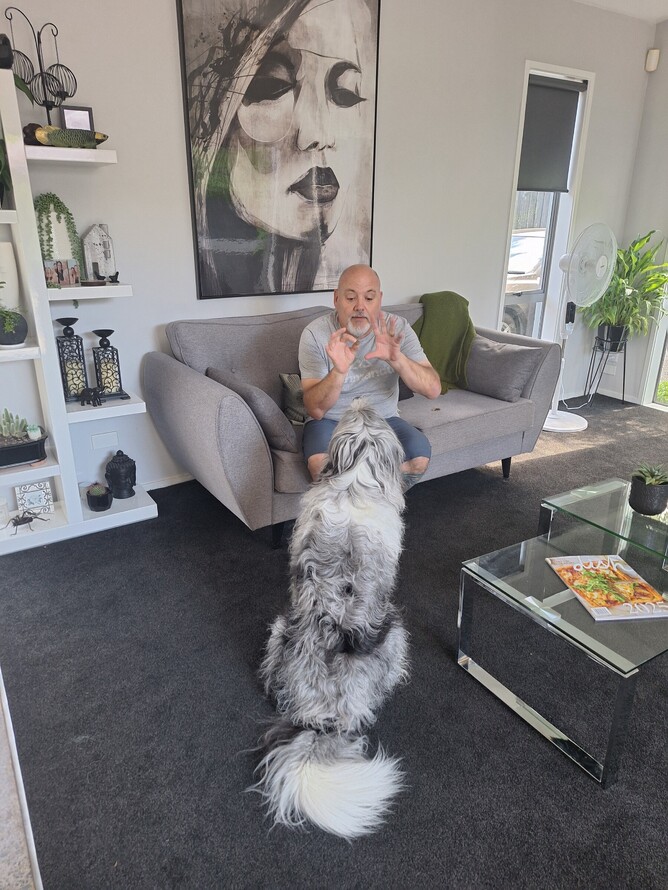 A 2 time house sit two weeks apart looking after Luca a very clever bearded collie who was very well trained and loved to do tricks, his companion and housemate Stella was an adorable old lady of 19yrs.