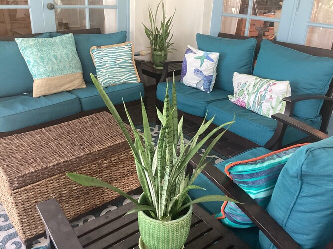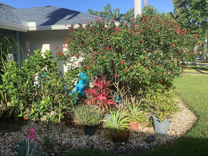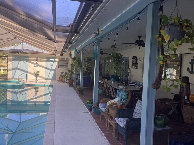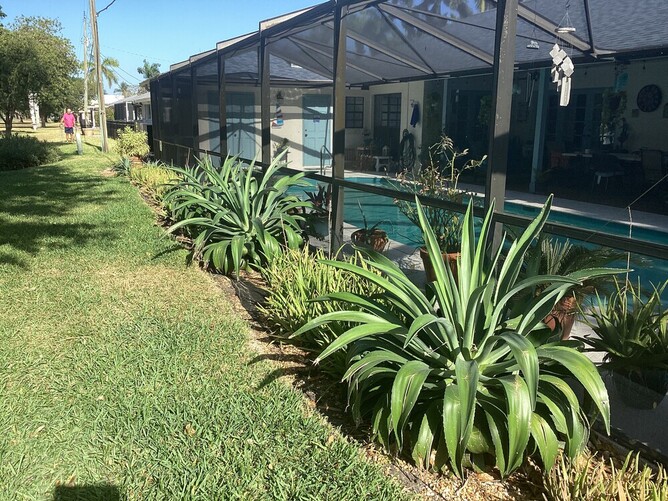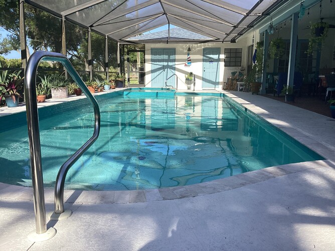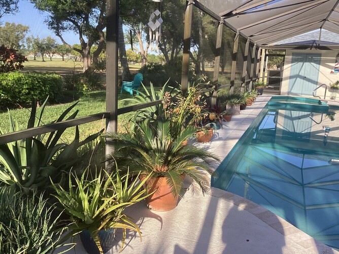 No pets this time but a pool and lots of tropical plants to tend and provide some TLC in the permanent sunshine.
